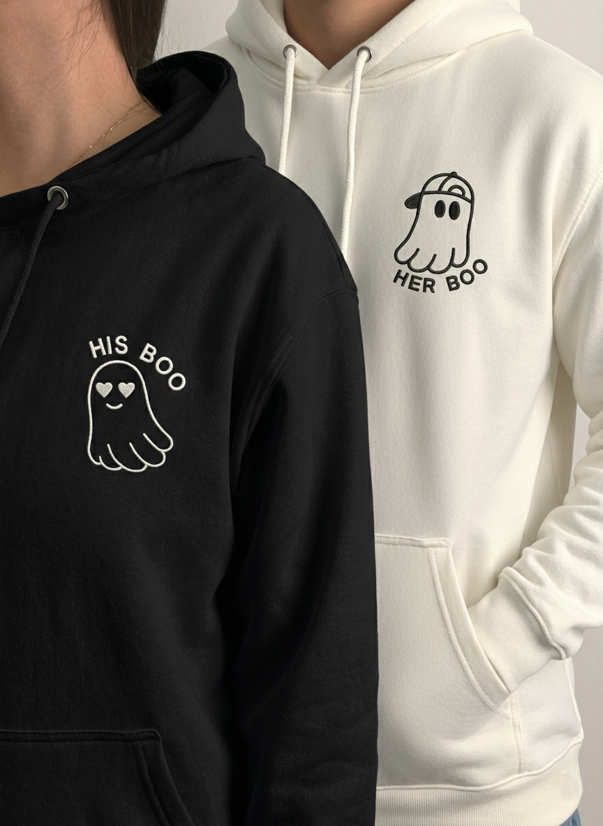 His Boo is designed for her in a soft off-white oversized hoodie, while Her Boo is made for him in a classic black oversized hoodie. Together, they’re a statement—minimal, bold, and effortlessly iconic.